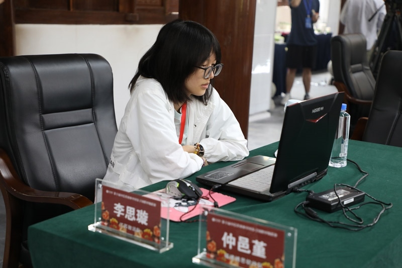 李思璇與仲邑堇線上比賽。人民網(wǎng)記者 李乃妍攝