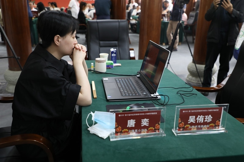 唐奕與吳侑珍線上比賽。人民網(wǎng)記者 李乃妍攝
