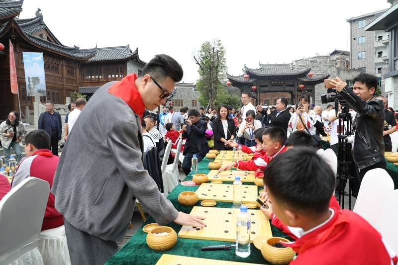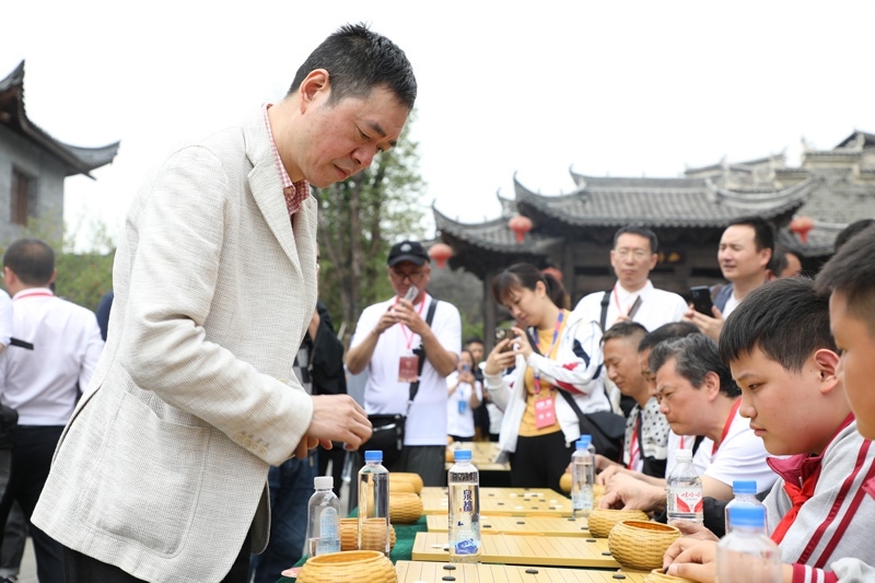 人民網(wǎng)銅仁5月15日電 (記者李乃妍)5月14日,第十屆中國女子圍棋甲級聯(lián)賽希望教室捐贈(zèng)儀式和指導(dǎo)棋活動(dòng)在銅仁市梵凈書院進(jìn)行,中國圍棋協(xié)會(huì)主席林建超等出席活動(dòng)并發(fā)言。世界冠軍古力、孔杰、馬曉春等與當(dāng)?shù)匦∑逋轮笇?dǎo)棋。