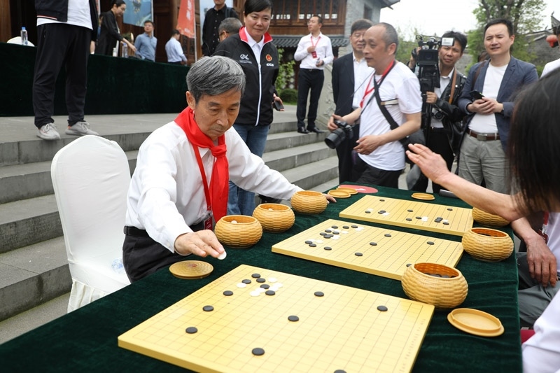 中國圍棋協(xié)會(huì)原主席王汝南下指導(dǎo)棋。人民網(wǎng)記者 李乃妍攝