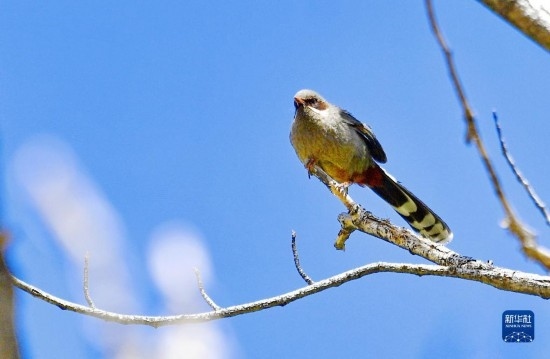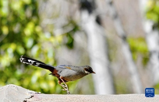 這是在拉薩市城關(guān)區(qū)拍攝的灰腹噪鹛(5月14日攝)。