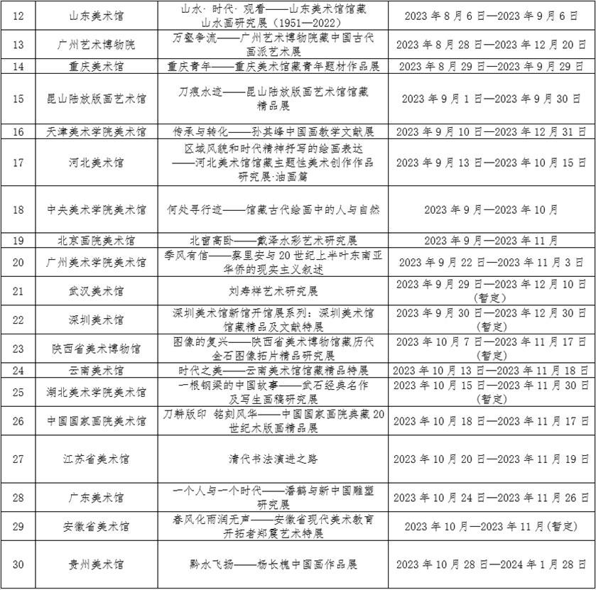 附:2023年全國(guó)美術(shù)館館藏精品展出季活動(dòng)目錄(按展覽時(shí)間排序)