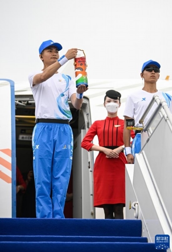 作為大運會官方合作伙伴,四川航空承擔此次火炬?zhèn)鬟f火種航空運輸保障任務。當日,“大運號”主題彩繪飛機執(zhí)行此次任務,并由“中國民航英雄機長”劉傳健負責執(zhí)飛本次航班。在火種護衛(wèi)隊21名隊員的護送下,火種飛赴火炬?zhèn)鬟f首站城市——北京。從6月10日到7月28日,大運火炬將承載著大運精神,奏響“奮斗青春 放飛夢想”的成都大運會序章。