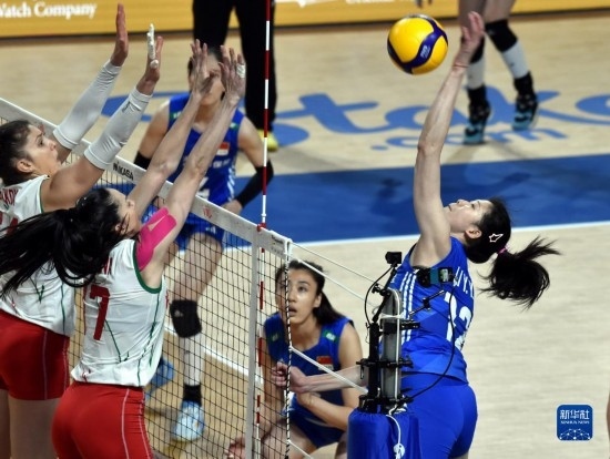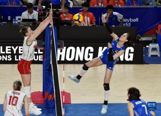 當日,在2023世界女排聯(lián)賽中國香港站比賽中,中國隊以3比1戰(zhàn)勝保加利亞隊。