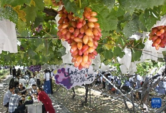 近日,山東省平度市大澤山鎮(zhèn)3.5萬多畝葡萄陸續(xù)成熟,當(dāng)?shù)嘏e辦的葡萄節(jié)吸引了眾多市民和游客前來采摘和游玩。據(jù)了解,大澤山鎮(zhèn)作為北方重要的葡萄集中種植地之一,擁有葡萄品種300余個(gè),年產(chǎn)葡萄5萬余噸、年產(chǎn)值約7億元。