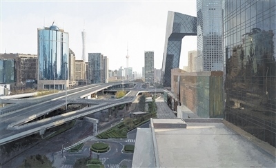 油畫(huà)《一線城市》,作者邱俊杰,選自“蔚然生長(zhǎng)”2023中央美術(shù)學(xué)院本科生畢業(yè)作品展。中央美術(shù)學(xué)院供圖