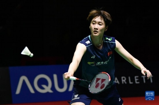 6月17日,陳雨菲在雅加達舉行的2023年印度尼西亞羽毛球公開賽女單比賽中回球。新華社記者 徐欽 攝