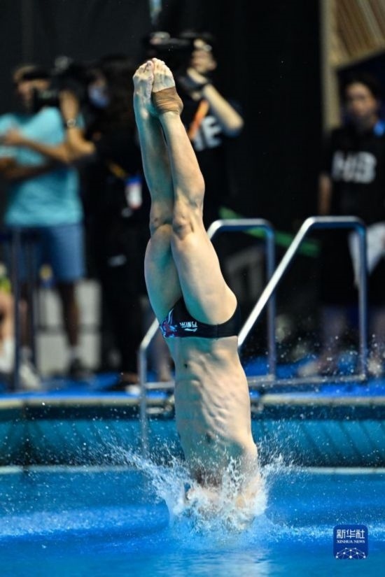7月18日,中國(guó)選手司雅杰在三米板項(xiàng)目比賽中。