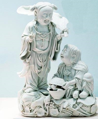 展覽第一單元“泥根玉雪元無染”,從“君子如蓮”的角度去解讀儒家文化中的蓮荷意象。先秦時期,蓮花成為儒家的“比德”之花,象征士大夫的芳潔之志,是“花中君子”人格意象的起點。屈原以“蓮花”寄托高潔志向,使其具有人格特征。漢代人們視蓮花為祥瑞。唐代文人賦予“白蓮”清凈不染的品性,使其“君子之義”進(jìn)一步顯現(xiàn)。宋代大儒周敦頤一生為官廉潔奉公,施澤于民,并以名篇《愛蓮說》定格了蓮花“中通外直”“亭亭凈植”的清廉君子意象和文人節(jié)操。第二單元“蓮花影里數(shù)樓臺”,從“花開見佛”“以蓮喻道”去闡釋佛道,以蓮花之潔凈比喻出于世間而清凈無染的品質(zhì),賦予蓮荷光明、美好、高尚和圣潔的意象。第三單元“映日荷花別樣紅”,從“和和美美”“福壽永年”“荷風(fēng)滿堂”的角度展示了世俗文化影響下與蓮有關(guān)的吉祥圖形和詞語。明清時期,民間因“荷”“和”諧音,以及蓮荷文化蘊含的“以和為貴”的理念,將蓮荷作為愛情幸福、婚姻美滿、多子昌盛、生活富裕、生生不息等涵義的吉祥物,和諧、和睦、和合的“蓮荷意象”得以確立。蓮荷在中國園林中更是“點睛之筆”,賞荷、詠詩、品酒,是園林生活中的盛事,也是寄托情志的重要方式,展現(xiàn)出人與人、人與自然和諧共生的美好畫卷。