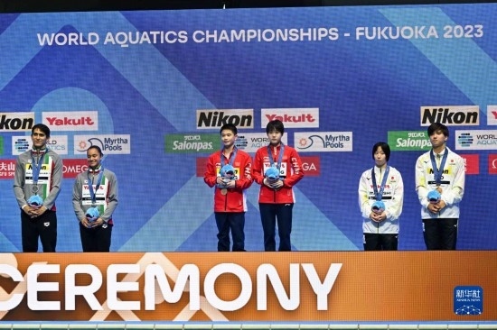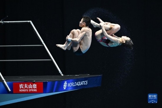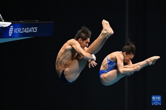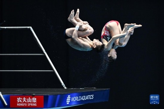 當(dāng)日,在2023年福岡世界游泳錦標(biāo)賽跳水混雙10米臺(tái)決賽中,中國(guó)組合王飛龍/張家齊以總分339.54分的成績(jī)奪得冠軍。