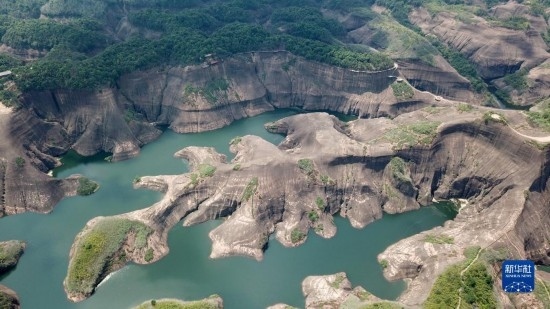 今年暑期,位于湖南省郴州市蘇仙區(qū)的高椅嶺景區(qū)迎來大量游客。高椅嶺有著罕見的丹霞地貌景觀,山頭渾圓四壁陡峭,碧水環(huán)繞風(fēng)景絢麗。