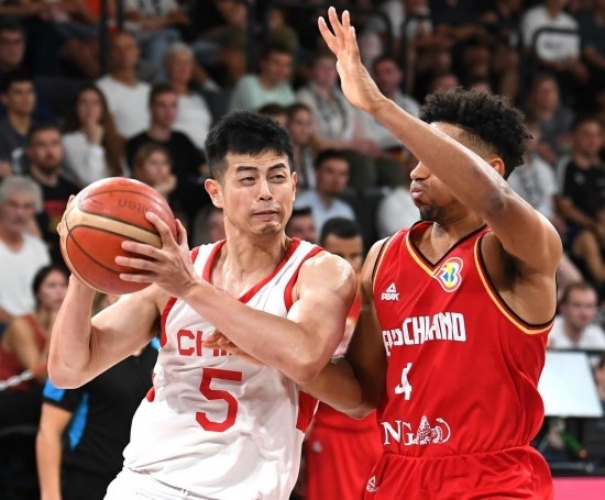 8月12日,在德國(guó)漢堡舉行的德國(guó)籃球超級(jí)杯比賽,中國(guó)隊(duì)以58:107不敵德國(guó)隊(duì)。新華社記者任鵬飛攝