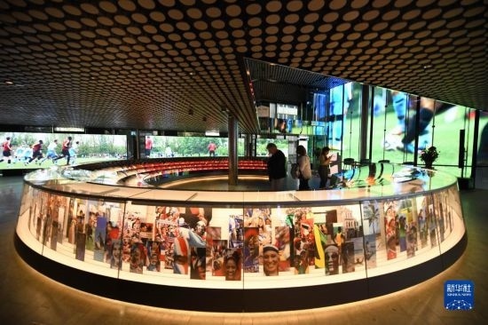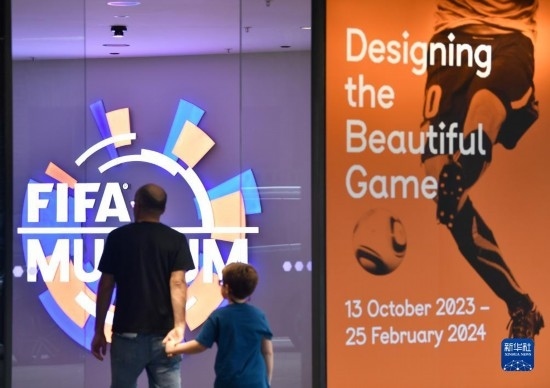 10月12日,在瑞士蘇黎世,人們參觀國際足聯(lián)博物館。新華社記者 連漪 攝