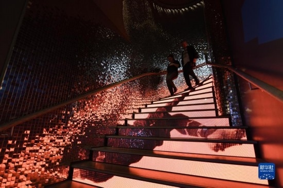 10月12日,在瑞士蘇黎世,人們走下國際足聯(lián)博物館的臺階。新華社記者 連漪 攝