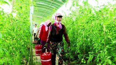 在涇源縣黃花鄉(xiāng)羊槽村,大棚種植番茄拓寬了農(nóng)民致富路。洪旭東攝