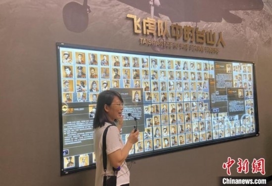 中國僑都華僑華人博物館內(nèi),講解員正在介紹飛虎隊中祖籍廣東臺山的隊員。畢松杰 攝