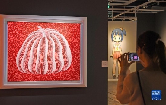 11月24日,在香港會(huì)議展覽中心,觀眾拍攝草間彌生作品《南瓜》。