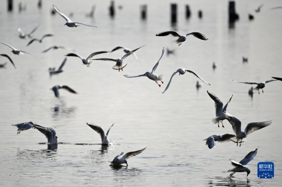 初冬時(shí)節(jié),天津市迎來(lái)候鳥遷徙高峰期,不少海鷗從寒冷的西伯利亞遷徙到濱海新區(qū)老碼頭附近的海河岸邊越冬,吸引游人前往觀賞。