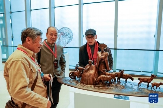 11月30日,人們?cè)谛蕾p首屆天府雕塑展上展出的作品。