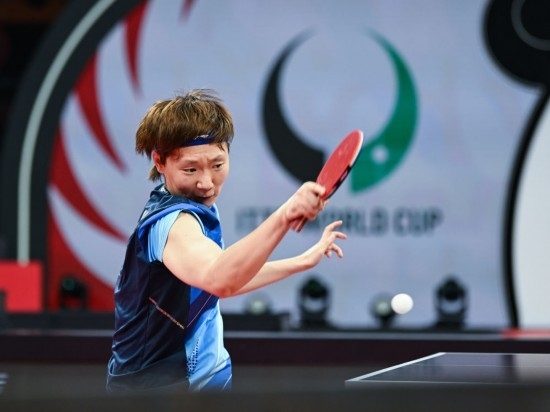 12月6日,中國隊選手王曼昱在女單比賽中回球。新華社記者 王曦 攝