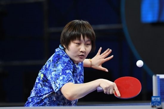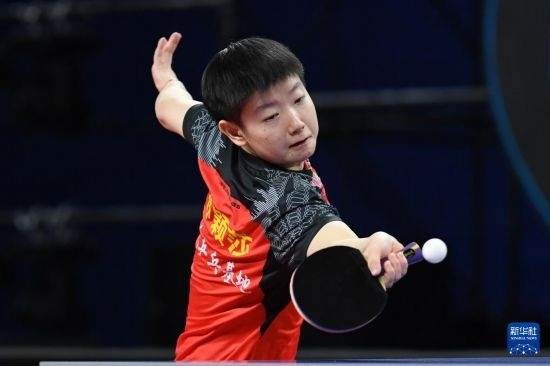 12月22日,深圳大學(xué)隊選手孫穎莎在女團半決賽中回球。她以3比0戰(zhàn)勝華東理工大學(xué)隊選手王藝迪。最終深圳大學(xué)隊以總比分3比1戰(zhàn)勝華東理工大學(xué)隊。新華社記者 梁旭 攝