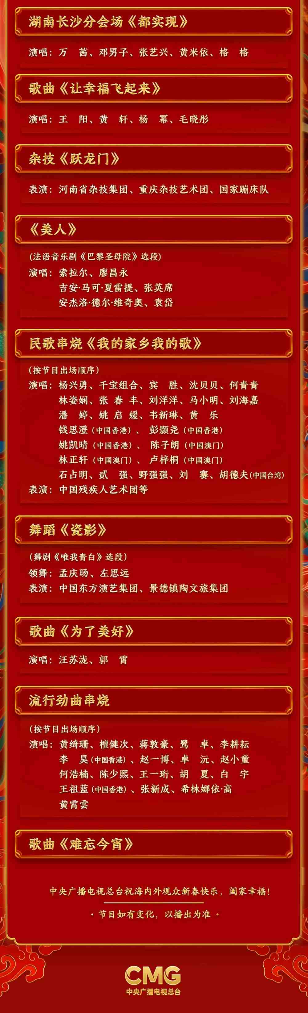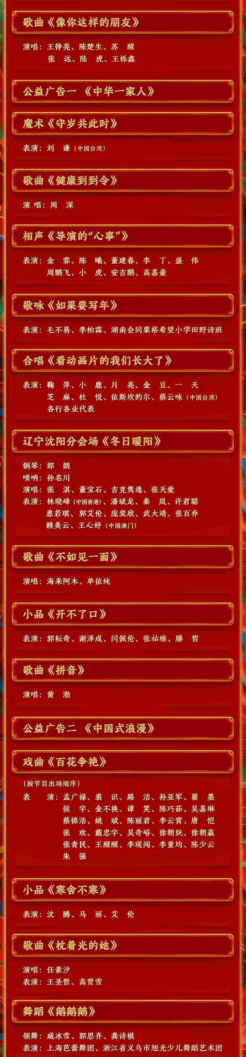 春滿中華,福到萬(wàn)家。中央廣播電視總臺(tái)《2024年春節(jié)聯(lián)歡晚會(huì)》節(jié)目單正式發(fā)布。