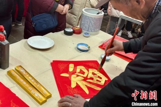 在琉璃廠西街,佘氏宣紙的門前一片紅火。負(fù)責(zé)人佘喬國(guó)告訴記者,店鋪主營(yíng)文房四寶,每年這時(shí)春節(jié)相關(guān)的商品最為暢銷,“今年琉璃廠區(qū)域街道上的春節(jié)景觀更多、更好看,也帶來(lái)了更多客流。我們備足了‘年貨’,滿足廟會(huì)游客的購(gòu)物需求?!?/p>