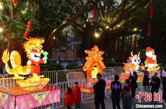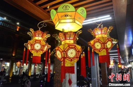 圖為2月20日晚,民眾在泉州古城內觀賞花燈。中新網(wǎng)記者 張斌 攝