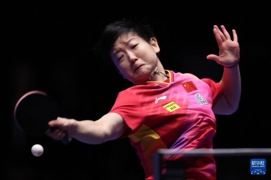 2月23日,孫穎莎在第一盤(pán)比賽中回球。她3比0戰(zhàn)勝法國(guó)隊(duì)選手帕瓦德。新華社記者 張濤 攝
