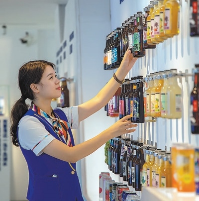 杭州市千島湖啤酒博物館內(nèi),館員正在整理藏品。千島湖啤酒博物館供圖