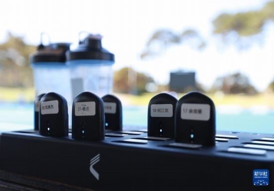 這是4月26日拍攝的中國(guó)女曲隊(duì)球員體能數(shù)據(jù)監(jiān)測(cè)器。新華社記者 馬平 攝