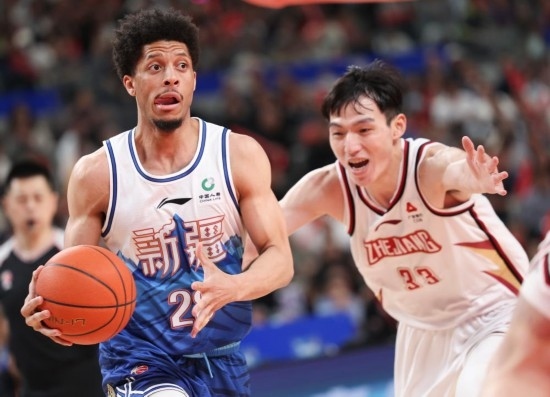 比賽開場,新疆隊率先進入狀態(tài),打出12:2的開局。浙江隊則在余嘉豪和蓋利的帶領下在首節(jié)結束時將比分追至27:30。次節(jié),復出不久的新疆隊后衛(wèi)趙睿狀態(tài)不錯,里突外投帶隊擴大分差。半場結束時,新疆隊63:53領先。