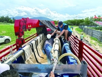 轉移“海棠”期間,工作人員不斷向它身上潑灑海水,使其皮膚保持濕潤。