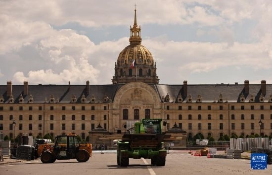 這是6月4日在位于法國(guó)巴黎市中心的榮軍院廣場(chǎng)拍攝的臨時(shí)比賽場(chǎng)地搭建現(xiàn)場(chǎng)。這里將在巴黎奧運(yùn)會(huì)期間舉辦射箭比賽。新華社記者 高靜 攝