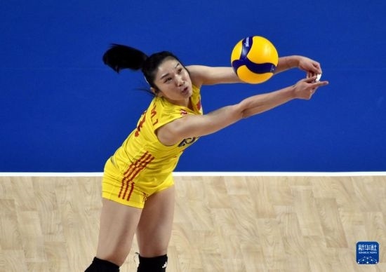 6月15日,中國隊(duì)球員王夢潔在比賽中墊球。新華社記者盧炳輝攝