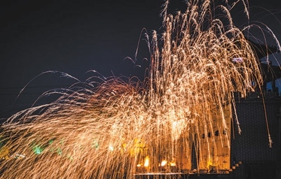 碎炭、起火、熔鐵、揚水、打花……夜晚,在河南開封清明上河園景區(qū),一場流光溢彩的“打鐵花”民俗文化表演正在上演(見圖,受訪者供圖)。隨著1600攝氏度的鐵水在夜空中幻化成漫天的“星光”,絢爛、璀璨,瞬間驚艷全場,現(xiàn)場觀眾由衷發(fā)出陣陣驚嘆。而這一巧奪天工的“重金屬藝術(shù)”正是開封打鐵花第二十二代傳承人劉小松及其團隊的作品。