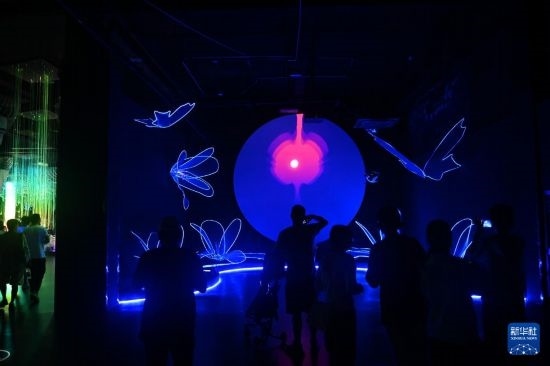 7月5日,游客在杭州宋城景區(qū)觀看光影互動。