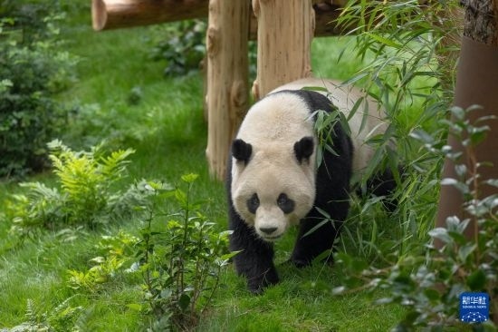 這是美國(guó)加利福尼亞州圣迭戈動(dòng)物園7月19日發(fā)布的大熊貓“云川”在動(dòng)物園新家的照片。