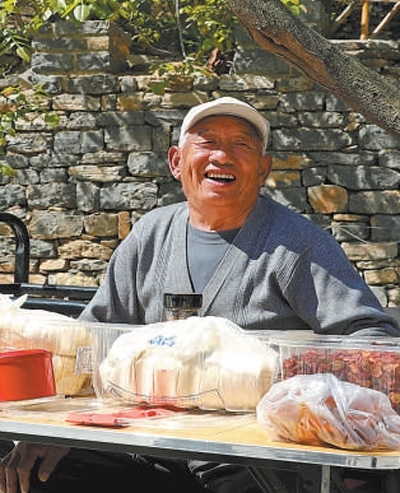 發(fā)展旅游,村民跟著富了口袋。小巷里,專門開辟了“山貨一條街”,拓寬農(nóng)產(chǎn)品銷售渠道。清晨,畢于漢就常到山上挖些中藥材、野菜,擺上地?cái)?,供游客挑選。