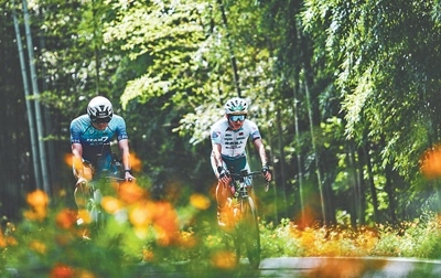 比賽過程中,入眼皆是廣德文旅元素?!拔覀儼羊T行主賽道設(shè)定在竹鄉(xiāng)畫廊,穿越萬畝竹海騎行,是令人難忘的比賽體驗(yàn)。為突出竹元素,比賽終點(diǎn)的拱門、自行車停放架均由竹子制作?!睆V德市教育體育局體育訓(xùn)練與活動中心主任王正富介紹,“給選手的賽事包內(nèi)還有一份廣德市旅游手繪地圖,方便大家賽后游玩。”