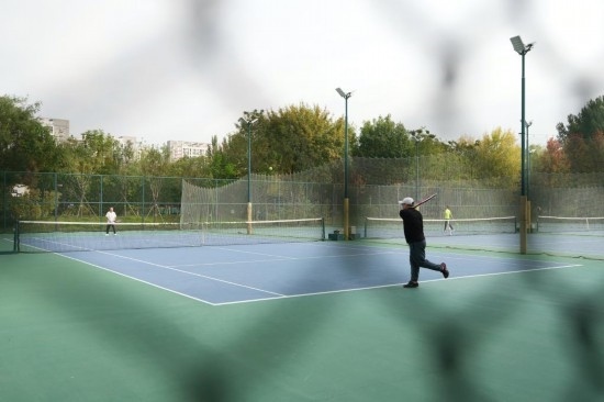 10月16日,在北京回龍觀體育文化公園的網(wǎng)球場(chǎng),幾位愛好者在打網(wǎng)球。新華社記者 鞠煥宗 攝