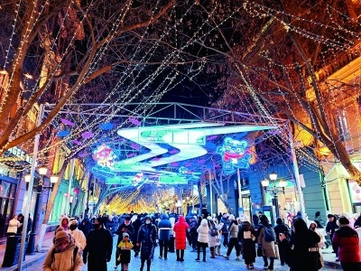 充滿節(jié)日氛圍的哈爾濱中央大街。