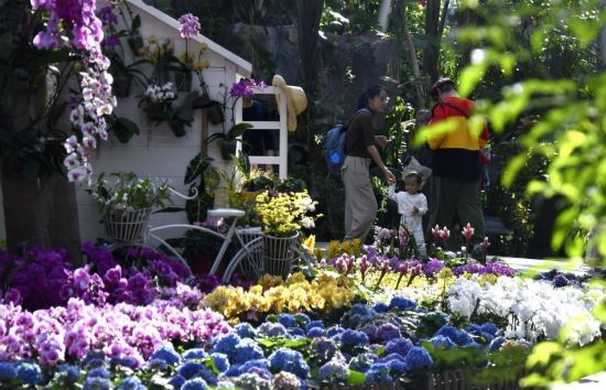 今年春節(jié)假期,在北京世界花卉大觀園,由數(shù)千盆顏色漸變的蝴蝶蘭組成的“花瀑”傾瀉而下、如夢(mèng)似幻,成為游客爭(zhēng)相合影的景觀。