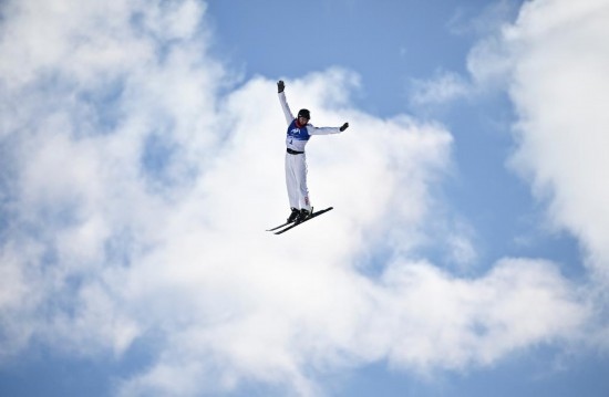 2月9日,李心鵬在落地時(shí)發(fā)生失誤。新華社記者 夏一方 攝
