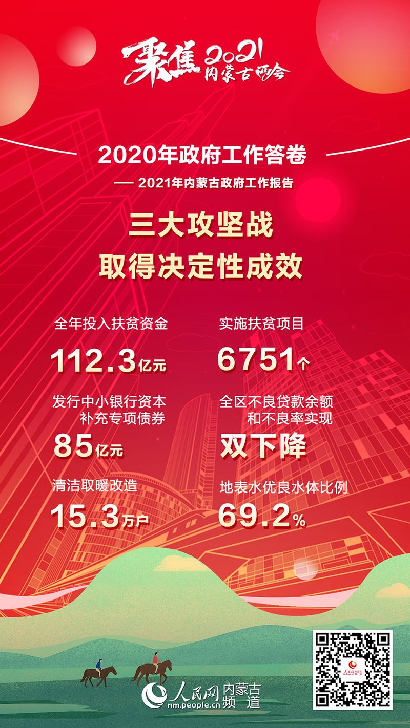 1月26日上午,內蒙古自治區(qū)十三屆人大四次會議在內蒙古人民會堂開幕。自治區(qū)主席布小林作政府工作報告。2020年是極不平凡的一年,內蒙古緊扣全面建成小康社會目標任務,堅持穩(wěn)中求進工作總基調,堅持以人民為中心,科學統(tǒng)籌疫情防控和經濟社會發(fā)展,扎實做好“六穩(wěn)”工作,全面落實“六?!比蝿?,全區(qū)經濟持續(xù)回穩(wěn),社會大局和諧穩(wěn)定,“十三五”規(guī)劃順利收官。2020年政府工作有哪些亮點?看內蒙古書寫這份精彩答卷!