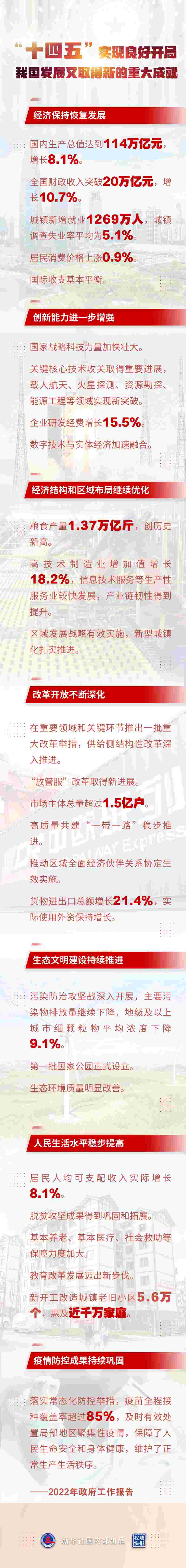 國務(wù)院總理李克強(qiáng)5日在政府工作報(bào)告中指出,過去一年是黨和國家歷史上具有里程碑意義的一年。以習(xí)近平同志為核心的黨中央團(tuán)結(jié)帶領(lǐng)全黨全國各族人民,隆重慶祝中國共產(chǎn)黨成立一百周年,勝利召開黨的十九屆六中全會、制定黨的第三個(gè)歷史決議,如期打贏脫貧攻堅(jiān)戰(zhàn),如期全面建成小康社會、實(shí)現(xiàn)第一個(gè)百年奮斗目標(biāo),開啟全面建設(shè)社會主義現(xiàn)代化國家、向第二個(gè)百年奮斗目標(biāo)進(jìn)軍新征程。一年來,面對復(fù)雜嚴(yán)峻的國內(nèi)外形勢和諸多風(fēng)險(xiǎn)挑戰(zhàn),全國上下共同努力,統(tǒng)籌疫情防控和經(jīng)濟(jì)社會發(fā)展,全年主要目標(biāo)任務(wù)較好完成,“十四五”實(shí)現(xiàn)良好開局,我國發(fā)展又取得新的重大成就。