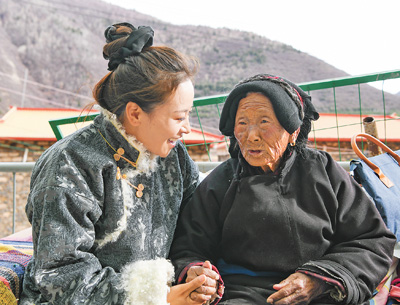 近日,全國人大代表、四川省馬爾康市老年養(yǎng)護(hù)院院長格西王姆(左)走訪鄉(xiāng)村,傾聽老人心聲。