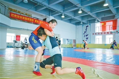 榜樣是看得見的力量。疫情防控要求下,隊里的姑娘們已經進行了大半年的全封閉訓練,對身心都是巨大的挑戰(zhàn),但她們都想向冠軍看齊,再大的挑戰(zhàn)也要迎上去?!叭ツ耆\會我因一分之差沒能進入決賽,特別遺憾??粗犛涯媒鹋?,我們都為她高興,也意識到自己要加倍努力!”全運會的失利成了張帥刻苦訓練的動力,練習摔跤10年,拿下一塊金牌是她今年的目標。雖然摔跤對抗強度大,拉傷扭傷是家常便飯,但張帥卻被這項運動深深吸引,她說:“我愛摔跤的刺激,不到最后一刻誰都不能預測勝負,拼到最后的熱血才是競技體育”。
