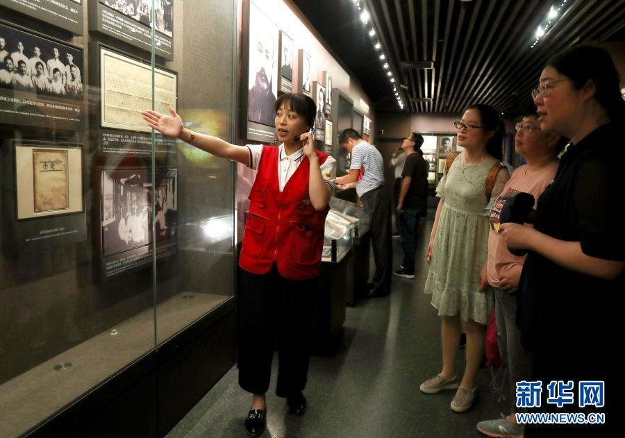 1月20日,“黨的誕生地”志愿服務隊隊員、上海大學的學生在中共一大會址紀念館為觀眾進行講解(2019年6月22日攝)。新華社記者 劉穎 攝