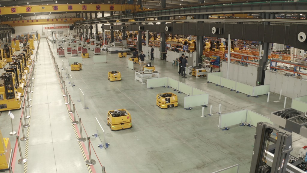 2021年8月27日,沈陽新松機(jī)器人自動(dòng)化股份有限公司智能移動(dòng)機(jī)器人生產(chǎn)車間。(沈陽新松機(jī)器人自動(dòng)化股份有限公司供圖)